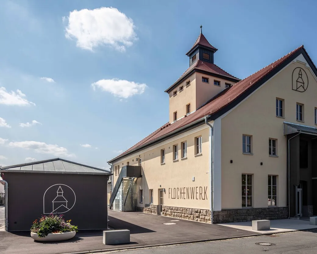 Anfang des 20. Jahrhunderts war das Gebäude für die Fabrikation von Kartoffelflocken errichtet worden. Künftig sollen darin verschiedene gastronomische Angebote untergebracht werden – Bistro, Vinothek und Restaurant mit Wintergarten. Der Investor Joachim Beck hat eine sehr persönliche Beziehung zum Flockenwerk. Seine Großeltern haben dort gearbeitet und gewohnt, sein Vater kam in einer kleinen Wohnung zur Welt. Die Leidenschaft des Investors für das Projekt Flockenwerk ist seit 2014 ungebrochen und soll nun im ersten Schritt mit der Eröffnung des Flockenwerk Restaurants Ende Mai 2021 Ihren Höhepunkt finden. In 2022 soll die Eröffnung des Flockenwerk Hotels folgen.